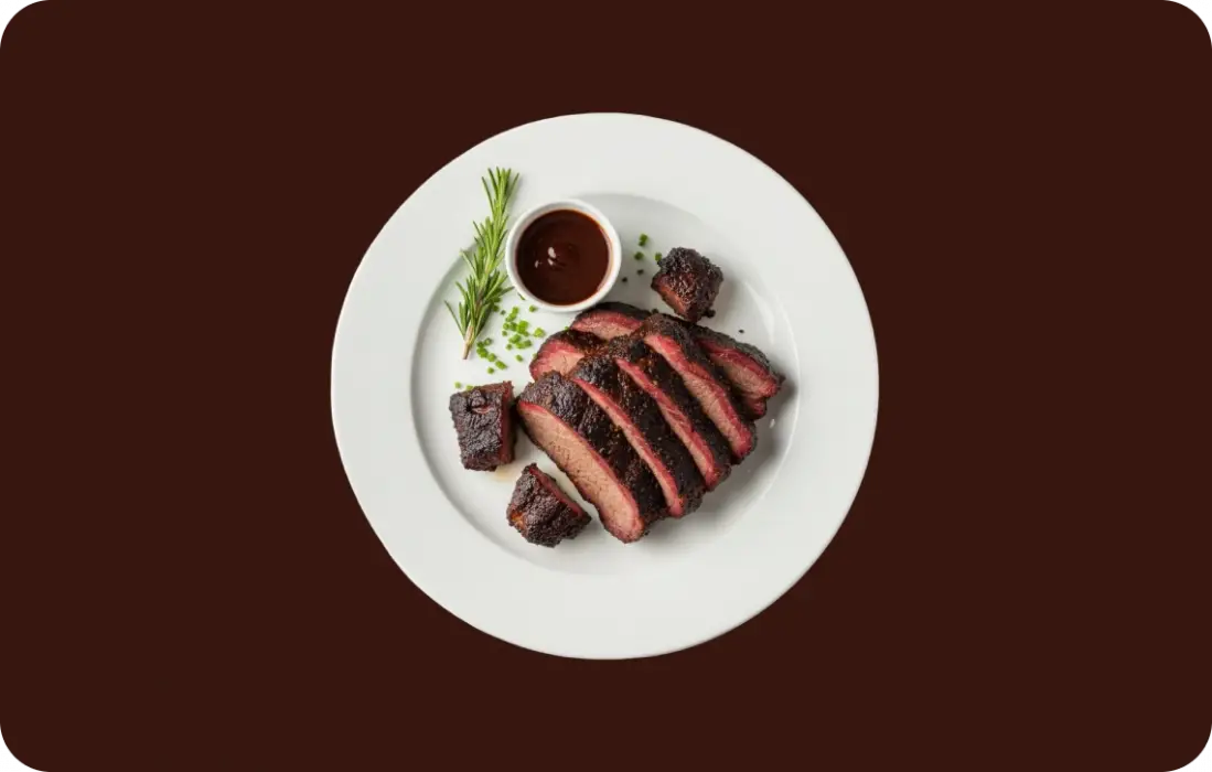 Брискет по-техасски от ГАСТРОМАСТЕР готовится из грудного отруба мраморного быка породы Black Angus. Это мясо отличается выраженной сочностью, обильной мраморностью и тонкими жировыми прослойками, которые обеспечивают насыщенный мясной вкус и мягкую текстуру готового продукта.
