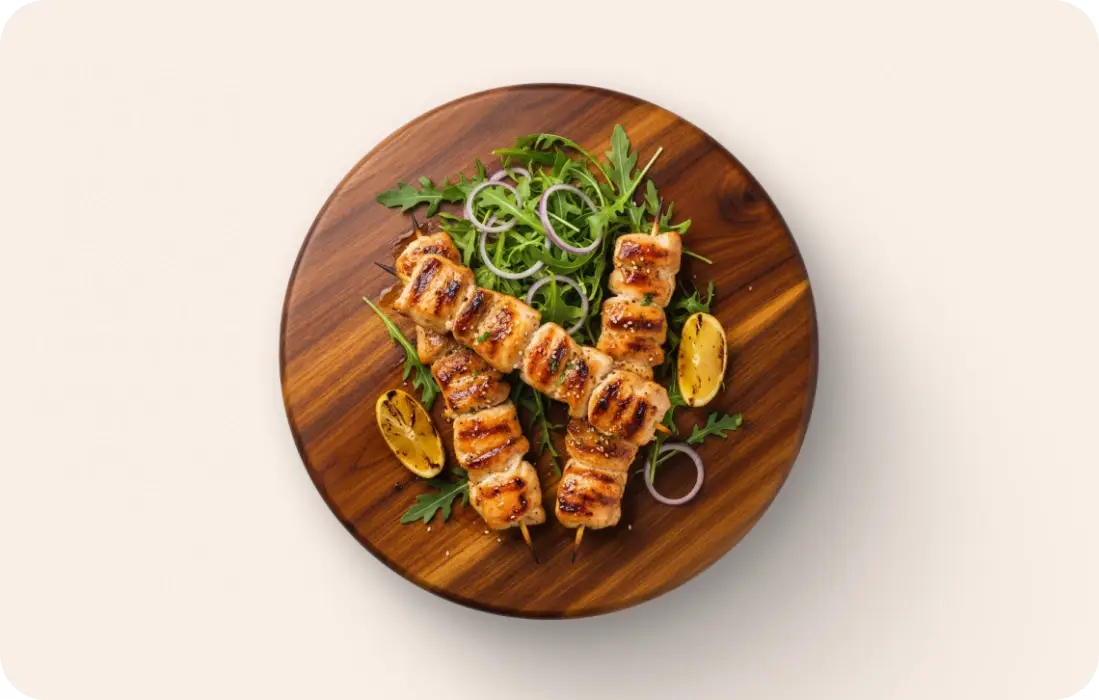 Шашлык от ГАСТРОМАСТЕР готовится из отборного филе грудки цыплёнка. Нежные кусочки курицы не содержат костей, имеют упругую текстуру, сливочно-фруктовый вкус и пряный аромат. Маринад глубоко пропитывает мясо, размягчая его волокна и придавая готовому шашлыку тающую текстуру.