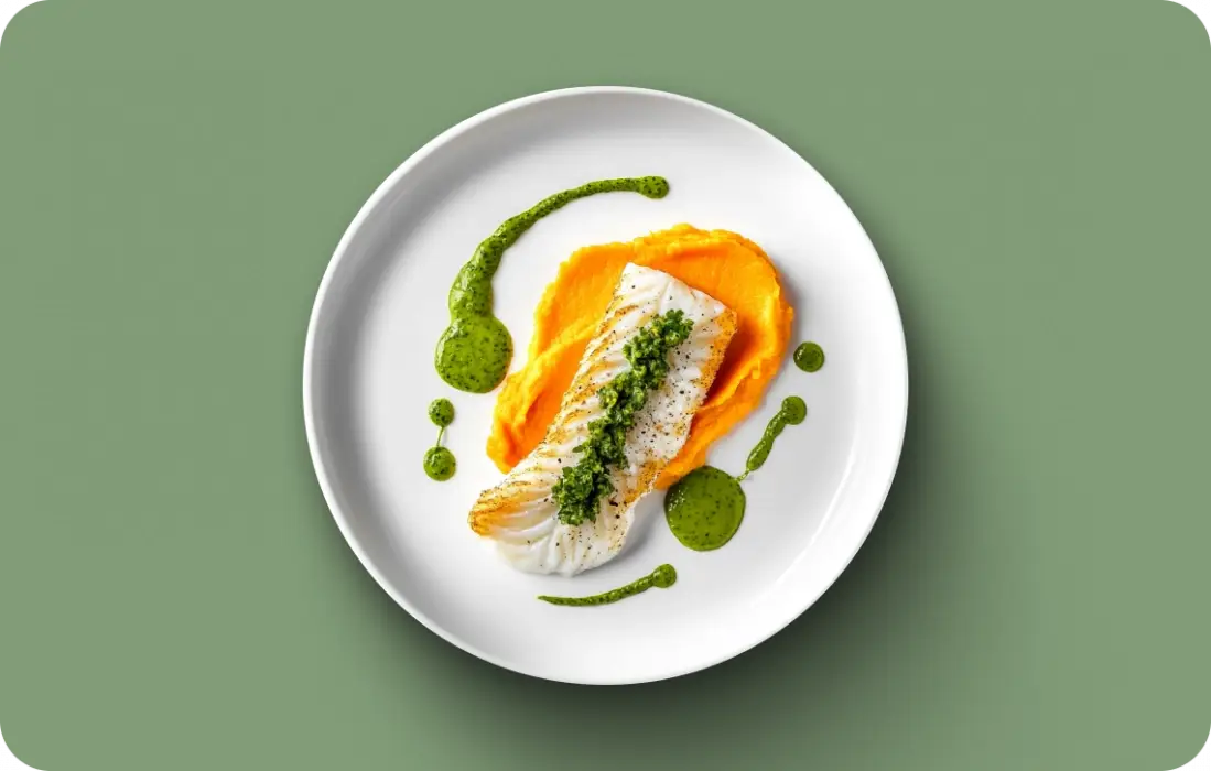 Пикша с морковным пюре — это нежное и ароматное блюдо, в котором филе пикши, обладающее легким вкусом и мягкой текстурой, подается с бархатистым пюре из свежей моркови. Комбинация этих ингредиентов создает гармоничное сочетание, где сладость моркови прекрасно дополняет и подчеркивает вкус рыбы.