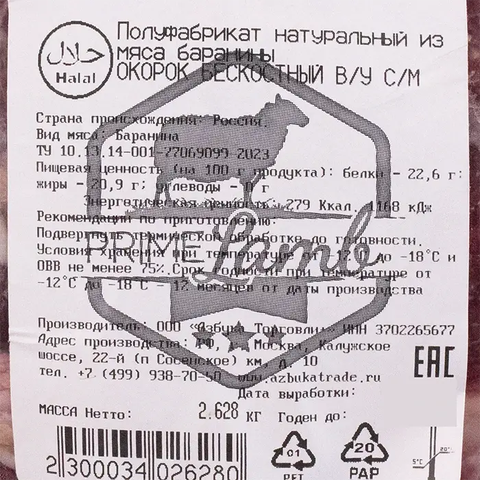 Баранина, окорок на кости, 2,2-2,5 кг