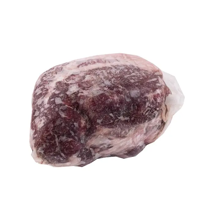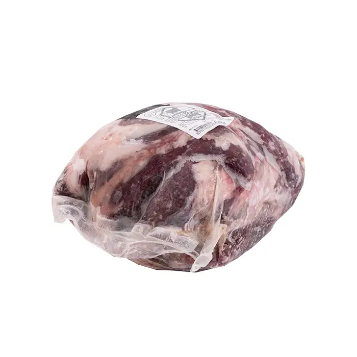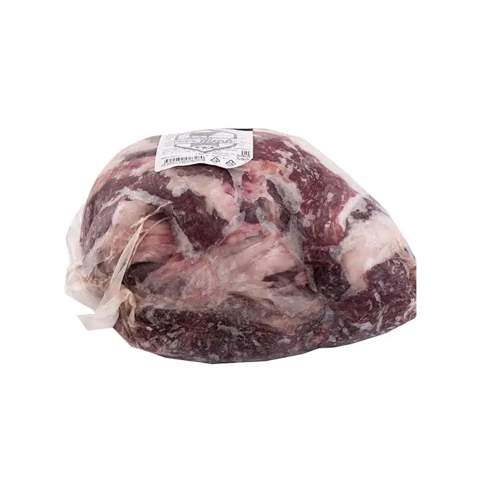 Окорок барана бескостный выделяют из мясистой части задней ноги туши. Отруб состоит из нескольких мышц с тонкими волокнами, хорошо удерживающими влагу. На поверхности куска содержится немного жира, а также присутствует соединительная ткань. Мясо окорока имеет нежирную и нежную текстуру, сбалансированный вкус и легкий мясной аромат.