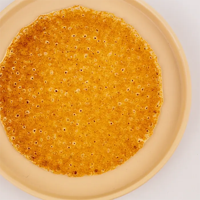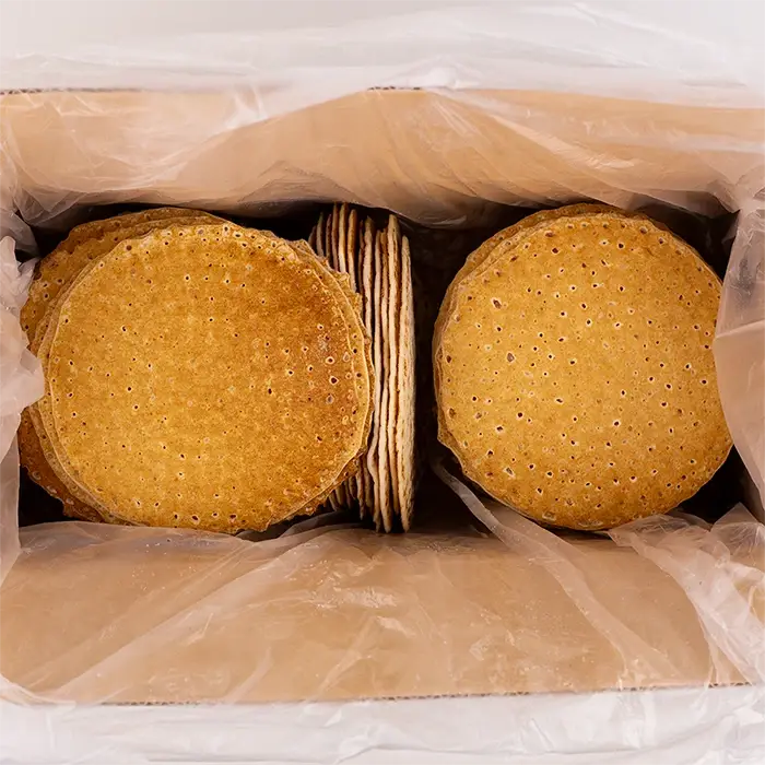 Тонкие блины имеют мягкую, эластичную и пористую текстуру, сладковатый вкус с легкой молочной кислинкой и аромат свежеприготовленного теста.