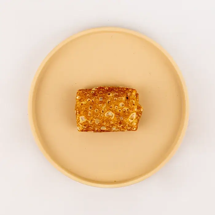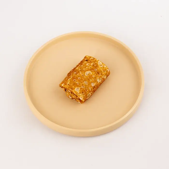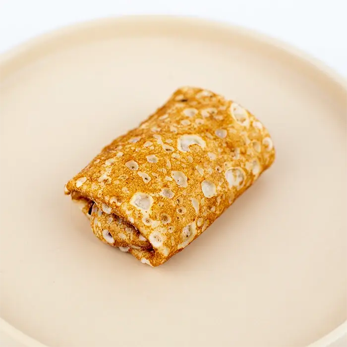 Блины с лесными ягодами имеют светло-золотистый цвет, сливочный аромат, плотную эластичную консистенцию снаружи и мягкую, сочную тякучую текстуру с кусочками ягод внутри. У блинов насыщенный ягодный вкус вкус с нежными сливочными нотами и легкой кислинкой.