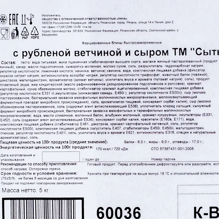 Блины с рубленой ветчиной и сыром «Сытый Папа», 5 кг