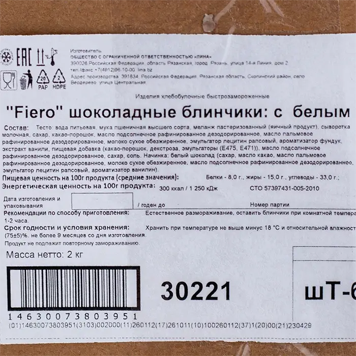Блины шоколадные с белым шоколадом Fiero, 2 кг