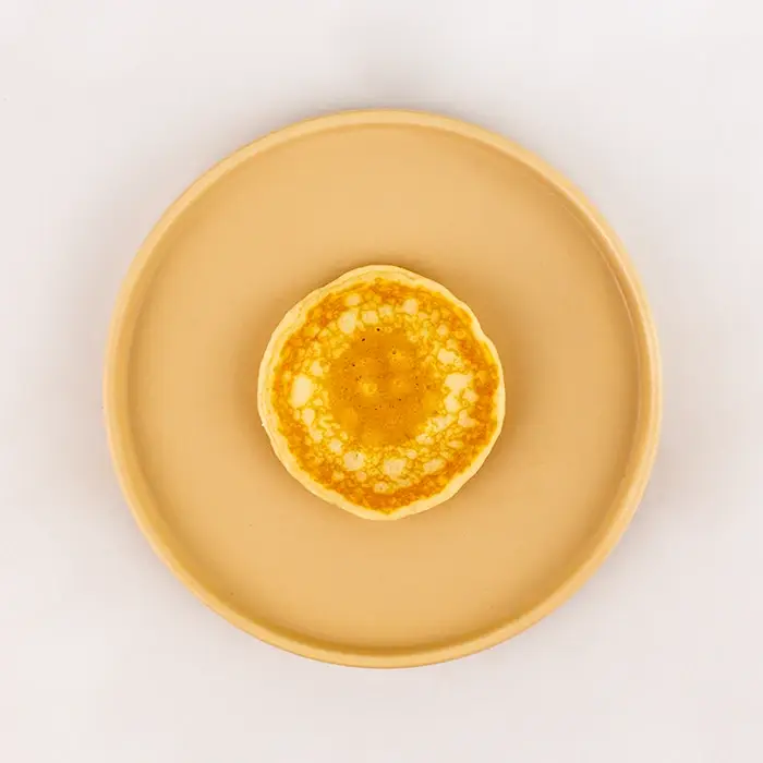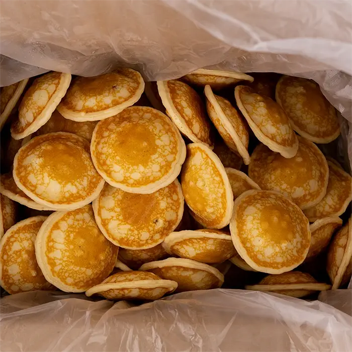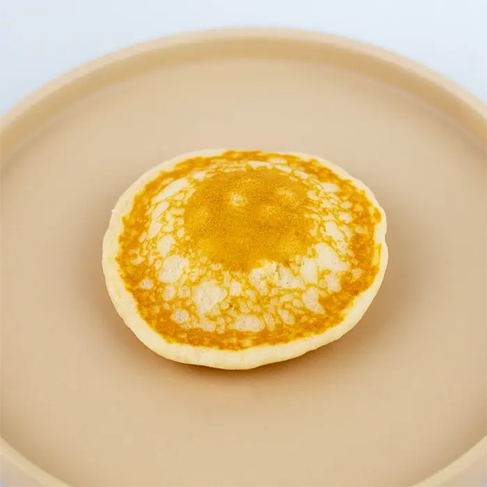 Сэндвич выглядит как два аккуратных, одинакового размера оладушка, плотно соединенных друг с другом, с начинкой из ореховой пасты. Сэндвич имеет золотистый цвет, мягкую, слегка пористую и воздушную текстуру, аромат свежей выпечки и сливочно-ванильный вкус оладушков и фундучный вкус начинки с нотами карамели и какао.