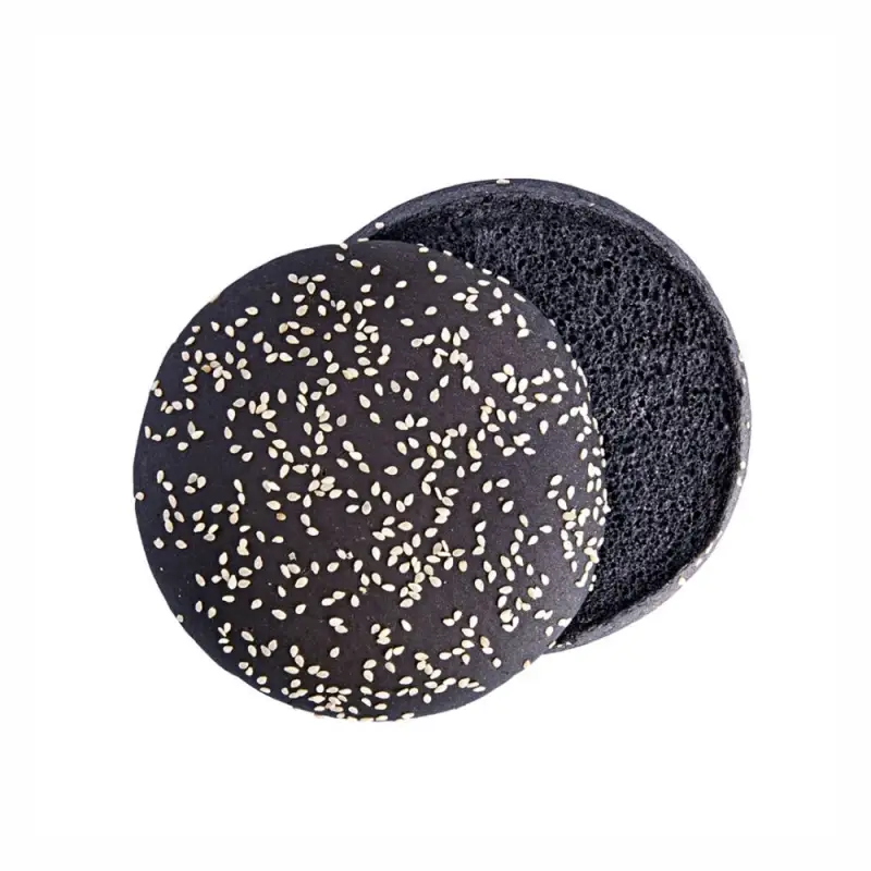 Эффектная черная булочка с белым кунжутом под котлету 123–136 мм.
