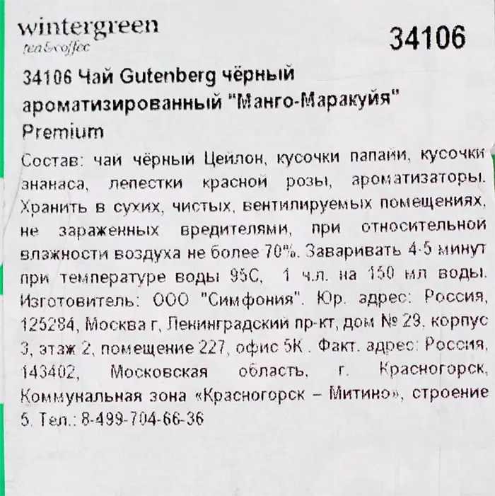 Чай черный Манго-Маракуйя Премиум Gutenberg, 500 г