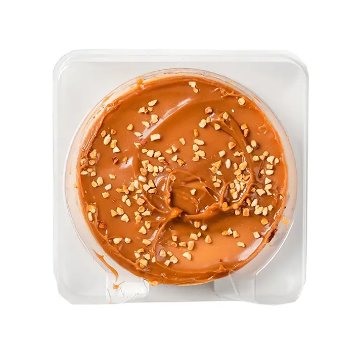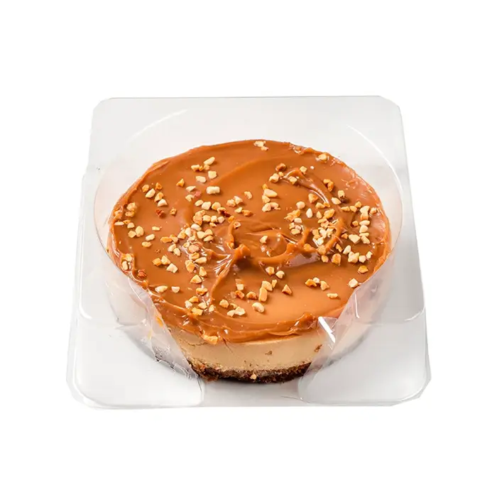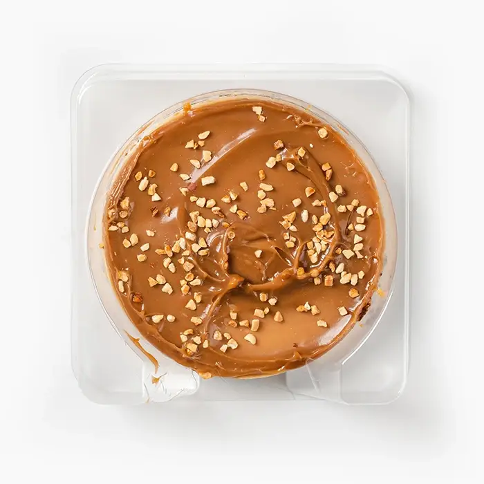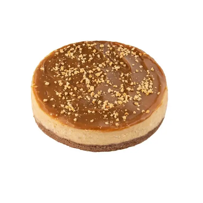 Чизкейк с нежным карамельным кремом, сгущенным молоком и дробленый арахисом.