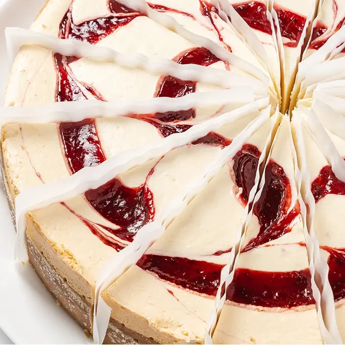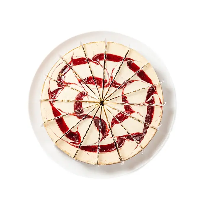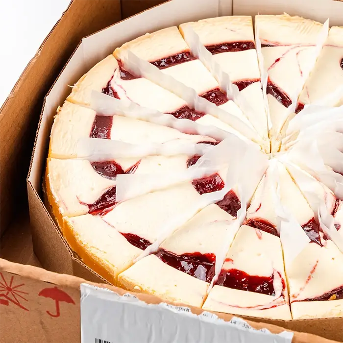 Десерт из нежного творожного сыра на сливочно-песочном корже со свежими ягодами и насыщенным вкусом клубники.