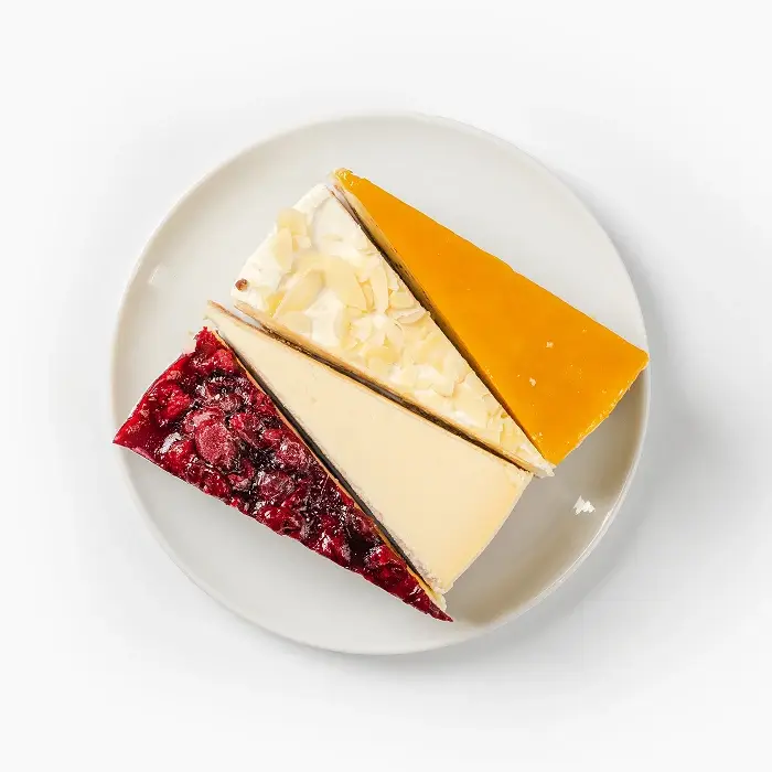 Мини-ассорти чизкейков из 4 вкусов: «Нью-Йорк», «Кокос и Миндаль», «Тропический с манго и семена чиа», «Вишня и Шоколад».