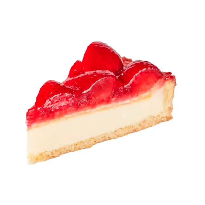 Классический чизкейк на основе песочного коржа и сырной начинки, усыпанный ягодами сочной клубники.