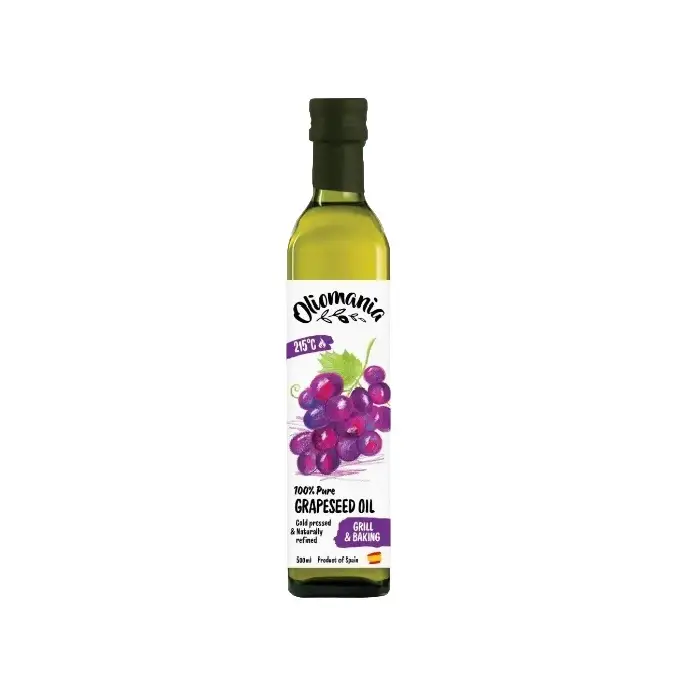 Растительное виноградное масло имеет чистый нейтральный вкус и легкий ореховый аромат, подходит для жарки (даже на фритюре и гриле) и для заправки соусов и салатов, насыщает пищу полезными жирными кислотами и повышает пищевую ценность продуктов. В нем содержится витамин Е, а также полезные кислоты Омега-3 и Омега-6