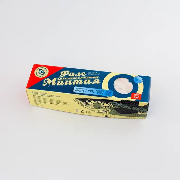 Филе минтая очищено от кожи, обладает плотной, нежной и слоистой текстурой, нейтральным вкусом со сладковатыми нотами и легким морским ароматом.