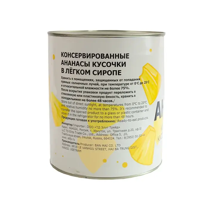 Консервированные кусочки ананасов в сладком сиропе c насыщенным кисло-сладким вкусом и ярким тропическим ароматом.