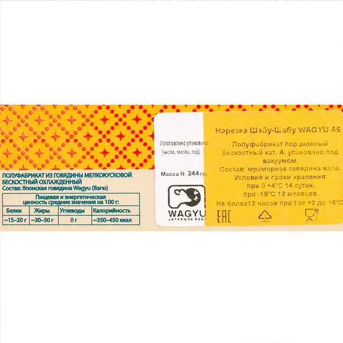 Говядина, нарезка Шабу-Шабу Wagyu A5, S MEAT, 200-250 гр