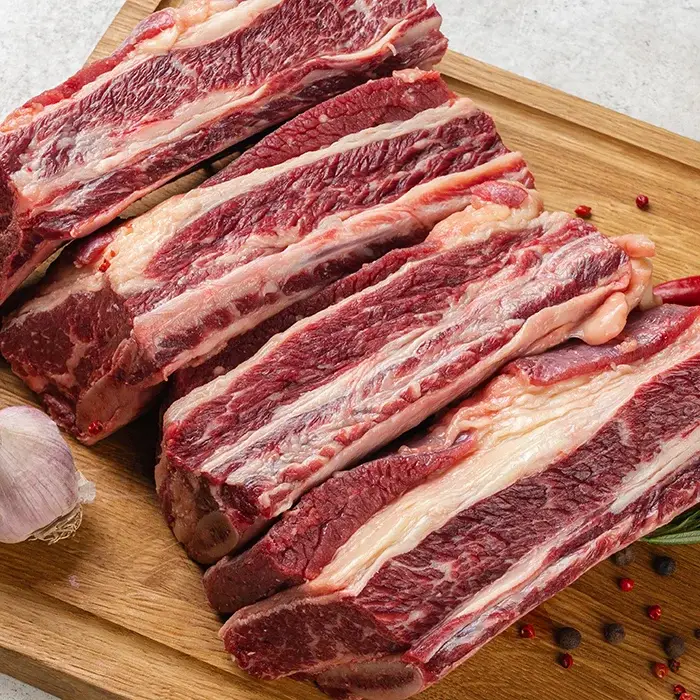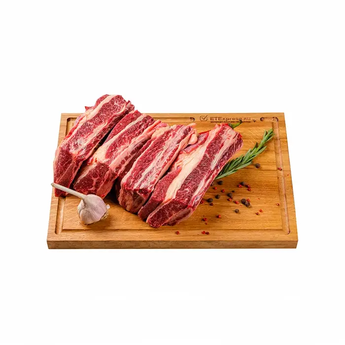 Говяжьи ребрышки имеют равномерный красно-розовый цвет, мраморный рисунок, нежный мясной аромат и много жировых прослоек, что делает их сочными и мягкими при приготовлении. Продукт подходит для жарки, тушения, варки. Ребрышки можно готовить на гриле и запекать с различными соусами и специями. Вакуумная упаковка защищает продукт от влаги, внешних воздействий и воздуха, что позволяет продлить срок его хранения.
