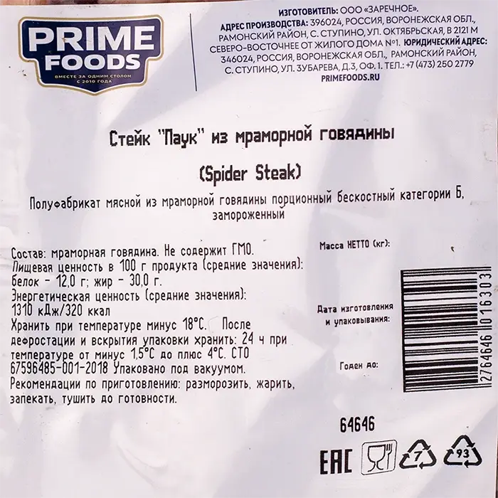 Говядина, стейк Паук Spider Steak «ПРАЙМФУДС», 1-1,6 кг