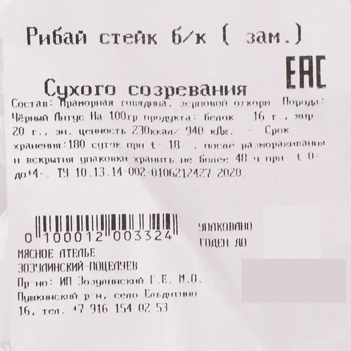 Говядина, стейк сухого вызревания Рибай Ролл, 400 г