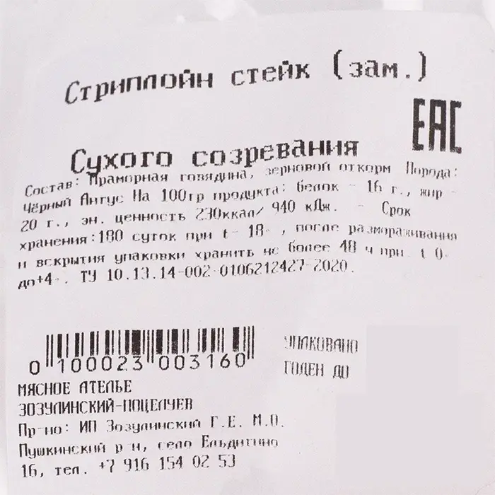 Говядина, стейк сухого вызревания Стриплойн, 400 г