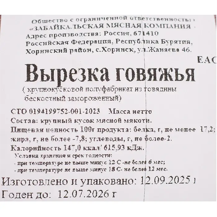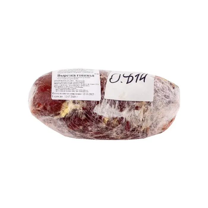 Вырезка – постное мясо без пленок и соединительных тканей, которое не требует долгой тепловой обработки. Говядина имеет упругую, волокнистую текстуру, мягкое мясо без костей и соединительных тканей, насыщенный вкус и легкий аромат.