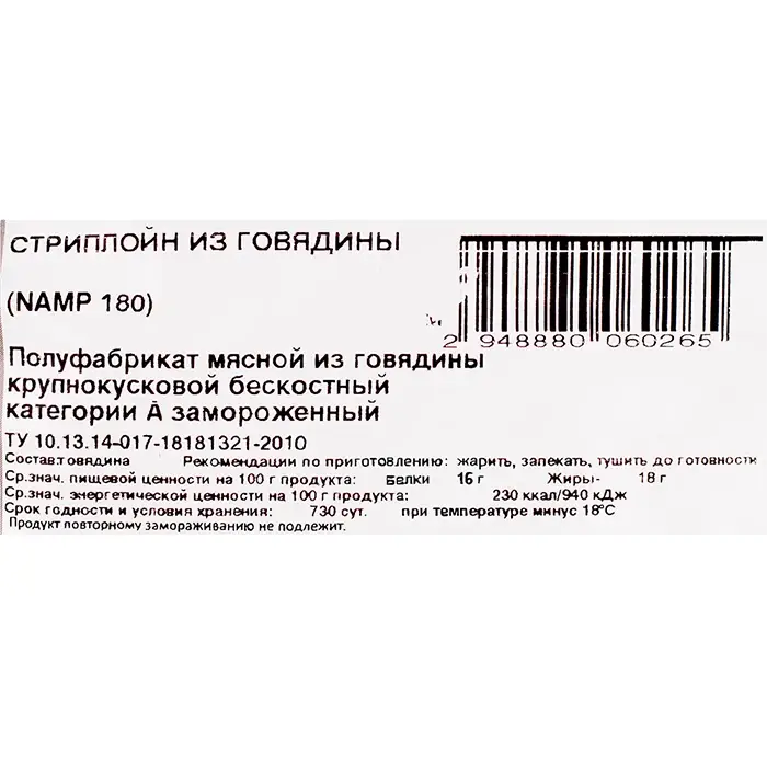 Мраморная говядина стриплойн без кости Matured Beef «Мираторг», 5 кг
