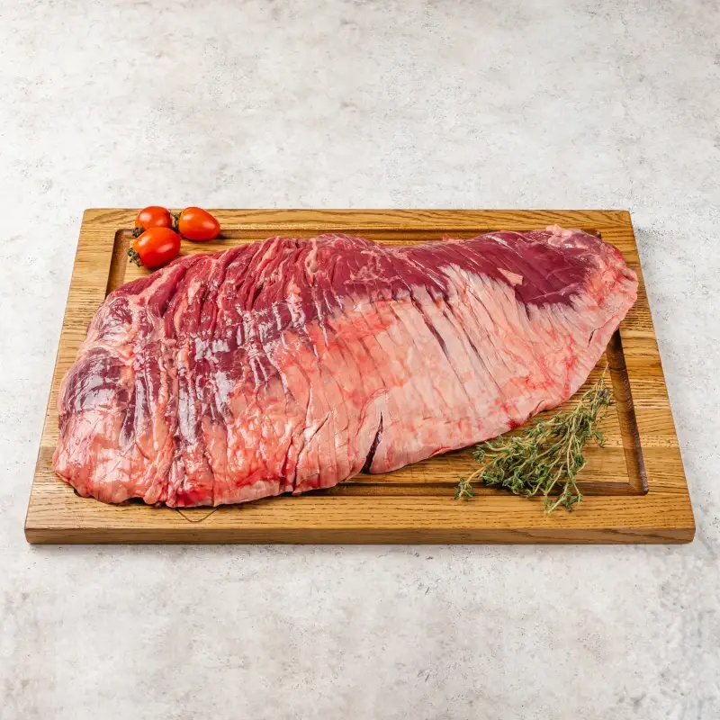 Cтейк с насыщенным говяжьим вкусом, прекрасно подходит для маринования или жарки на гриле. Приготовлен из тонкой диафрагмы — эта мышца отвечает за работу легких. Отличается ярким вкусом и ароматом, высокой мраморностью и средней жесткостью. Говядина Matured Beef от Мираторг – это высококачественное мясо, изготовленное из коров породы Абердин Ангус. Главная отличительная черта мяса Matured Beef заключается в том, что оно проходит процесс «вызревания», в результате чего приобретает более мягкую структуру и наполняется потрясающим ароматом. Эта говядина имеет натуральный вкус с легкой кислинкой, который формируется благодаря длительному травяному откорму.