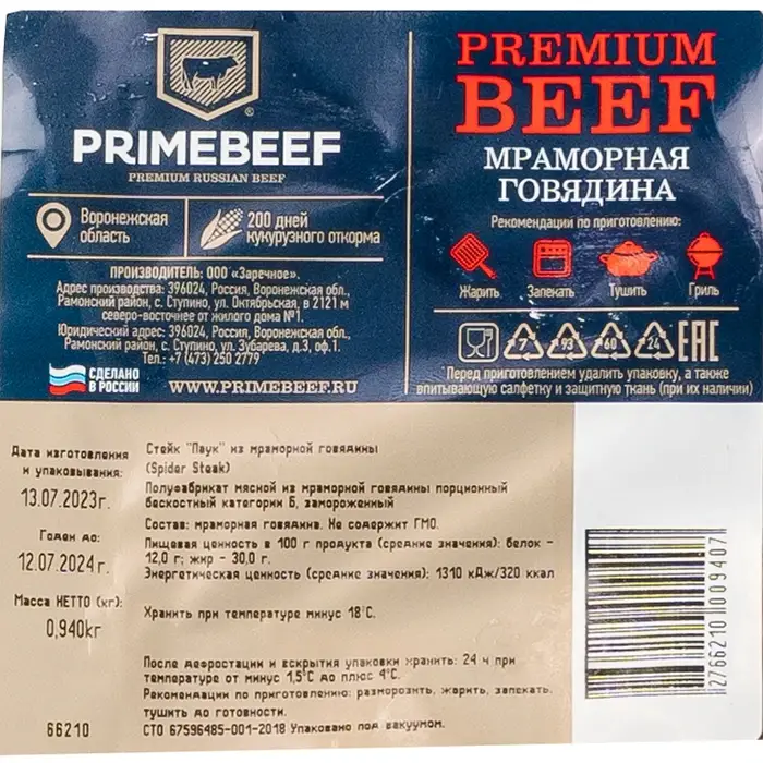 Стейк из говядины Spider Steak «Праймбиф», 1,2 кг