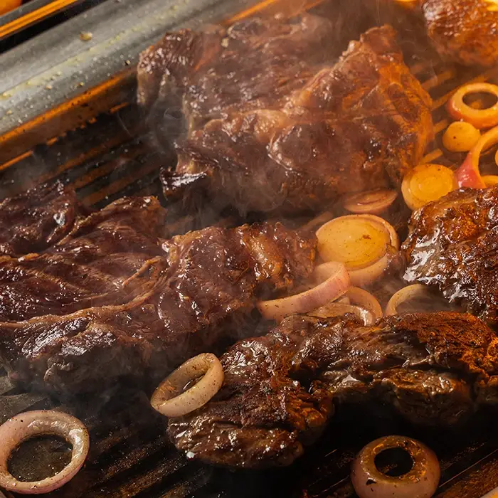Стейк Паук расположен в тазобедренной части, он получил свое название за счет тонкой сетки жировых прослоек, которая его покрывает. Стейк редкий: в бычке их всего два, и они находятся в сложнодоступном месте, из которого достаточно трудно извлечь. Эта мышца практически не нагружается, поэтому стейк получается очень нежным. В процессе приготовления говядина становится особенно мягким, с ярким мясным вкусом.