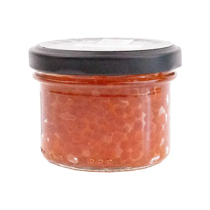 Икра горбуши имеет средний размер (4–6 мм), красно-оранжевый цвет с янтарным отблеском, гладкую тонкую оболочку, свежий аромат и нежный сливочный вкус без горчинки и рыбного запаха.
