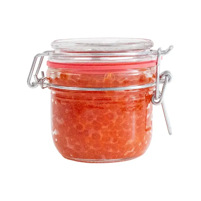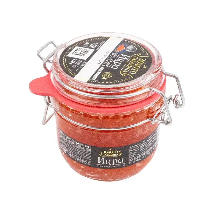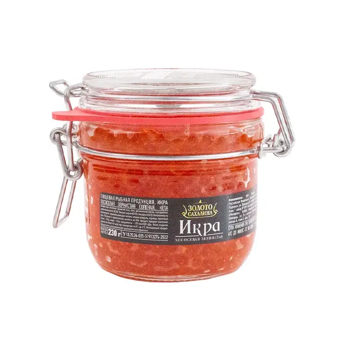 Икра кеты имеет крупный размер, светло-оранжевый цвет с янтарным отблеском, плотную гладкую поверхность, свежий аромат и нежный сливочный вкус без горчинки и рыбного запаха.
