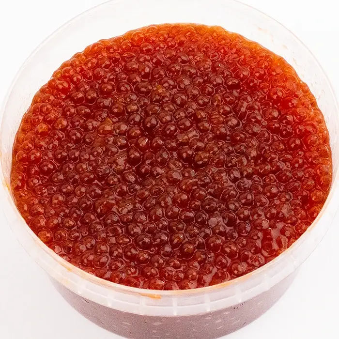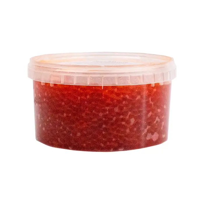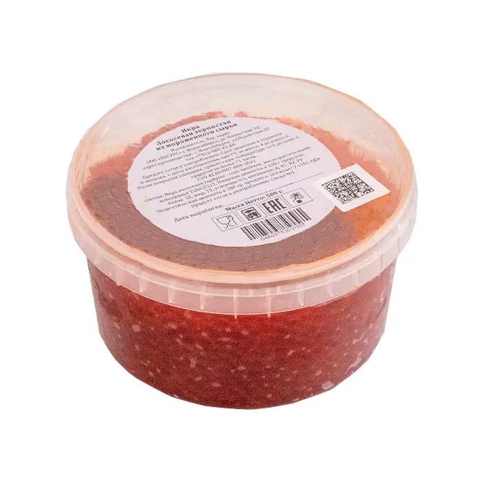 Икра лососевая зернистая, красно-оранжевого цвета, с нежным вкусом и ароматом. Продукт идеально подходит для приготовления бутербродов, канапе, закусочных блюд, добавления в салаты и украшения праздничных столов.
