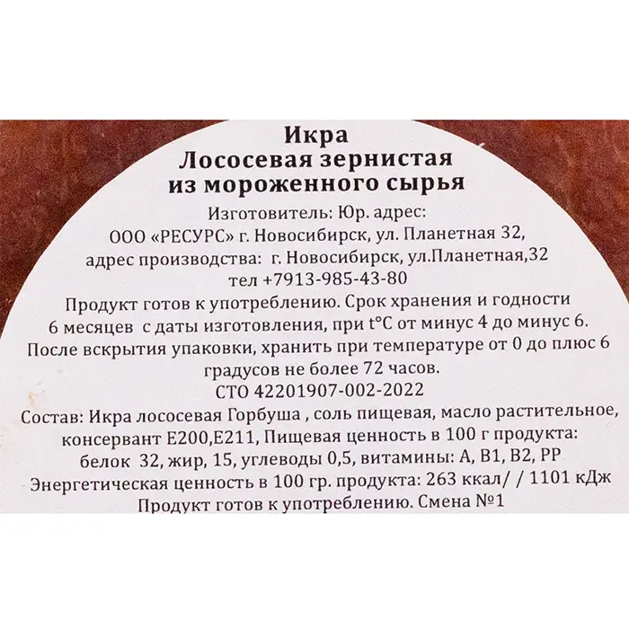 Икра лососевая горбуа, соль пищевая, масло растительное, консервант Е200, Е211