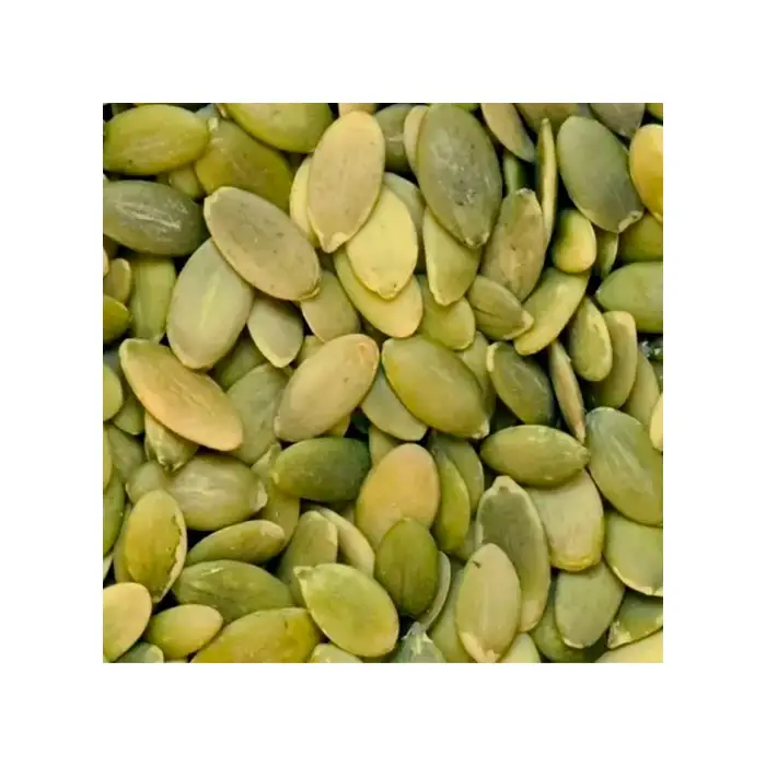 Тыквенные семечки очищенные и высушенные, богаты витаминами и жирами. Семена имеют плоскую овальную форму, гладкую поверхность, зеленоватый оттенок, плотную хрустящую текстуру, сладковато-нейтральный вкус, немного напоминающий арахисовый.