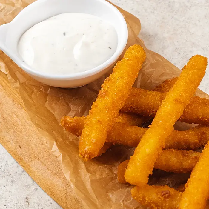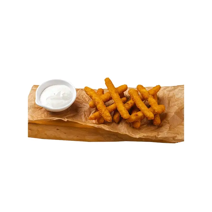 Аппетитные палочки из кальмара имеют мягкое нежное мясо со сладковатым морским привкусом и золотистую хрустящую корочку. Размер одной палочки от 8 до 12 сантиметров.