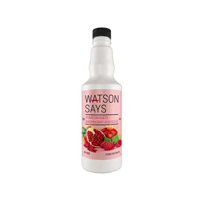 Концентрат производится из кусочков малины с добавлением гранатового сока, содержит витамины и имеет яркий бордовый цвет, густую текстуру и насыщенный цветочный аромат с черносливовым оттенками. Основа сочетает кисло-сладкий вкус садовой малины с освежающими нотами нежного гибискуса и слегка терпкого спелого граната.