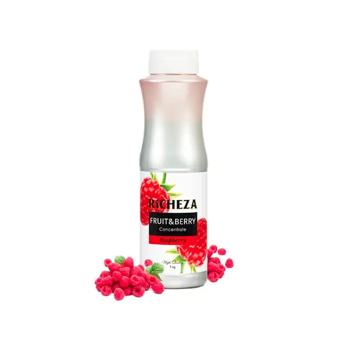 Концентрат производится из ягод малины с добавлением пюре, имеет яркий красный цвет, густую текстуру, кисло-сладкий вкус и насыщенный аромат малины. Продукт используется для приготовления горячих и холодных напитков, выпечки, десертов.