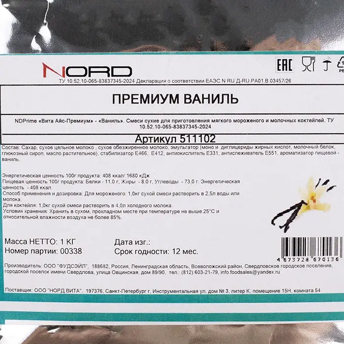 Готовая сухая смесь позволит легко и быстро приготовить мягкое мороженое или молочный коктейль с нежным ванильным вкусом и ароматом. Смесь изготовлена из натуральных ингредиентов без добавления консервантов и усилителей вкуса.