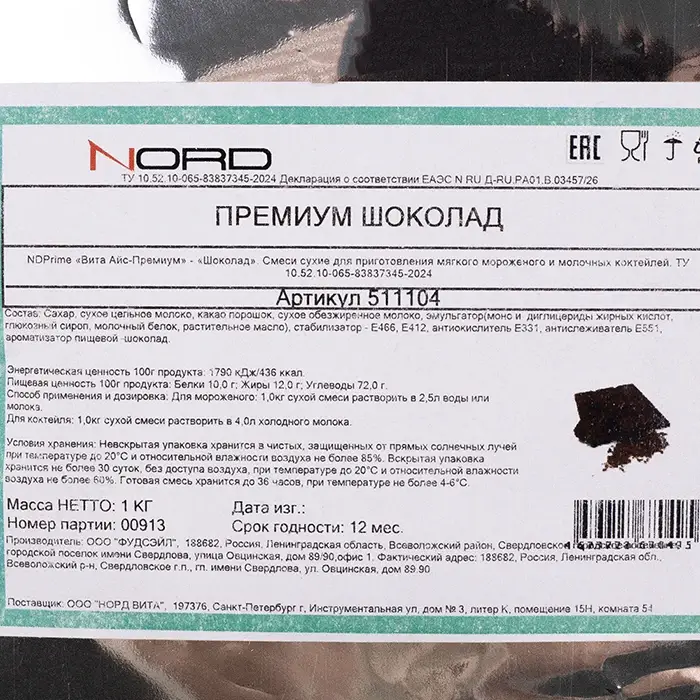 Готовая сухая смесь позволит легко и быстро приготовить мягкое мороженое или молочный коктейль с насыщенным шоколадным вкусом. Смесь изготовлена из натуральных ингредиентов без добавления консервантов и усилителей вкуса.