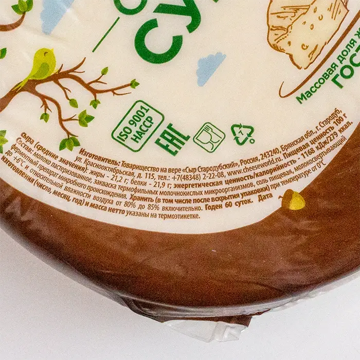 Сыр полутвёрдый Сулугуни копченый европейский 45% «Стародубский»,670 гр