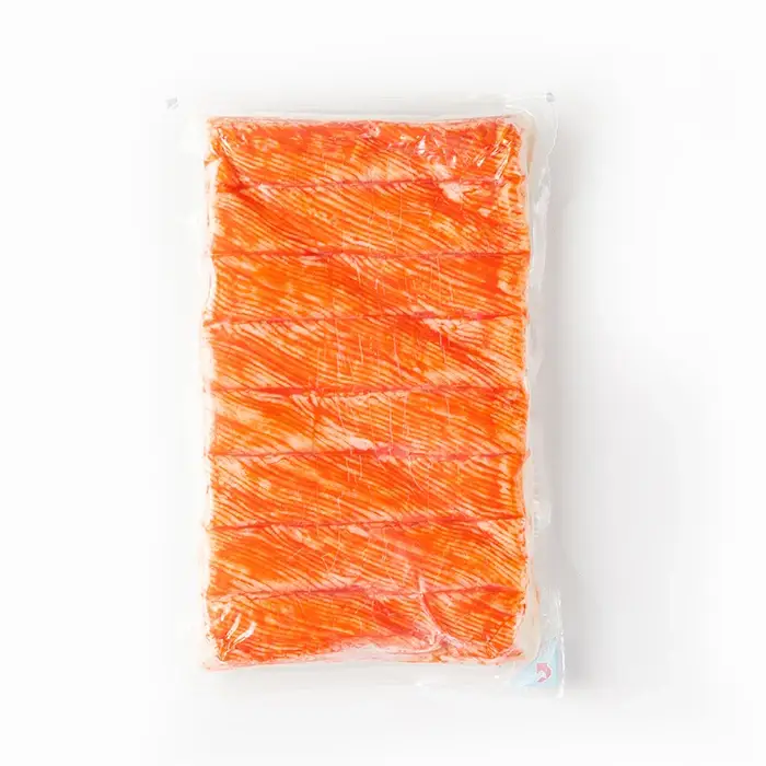 Фарш рыбный (сурими): мясо рыбы (К-джонии, Э-заурида-эсо, И-нитепер, Л-лептуракант малоголовый, КК-бычеглаз, С-пятнистый стрижехвост, СП-краснозубый спинорог, ТС-рыба-сабля, СД-большеголовая сардинелла, БГ-большой желтый горбыль, А-макруронус американский), сахар, яичный белок, агент влагоудерживающий сорбит, стабилизаторы: пирофосфат натрия, полифосфат натрия, вода питьевая, крахмал картофельный, загуститель Е1442 (модифицированный крахмал), масло растительное, соль, ароматизаторы (содержат натуральные экстракты краба, креветки, устриц, усилитель вкуса и аромата: глутамат натрия 1-замещенный), красители: диоксид титана, кармины, экстракт паприки.