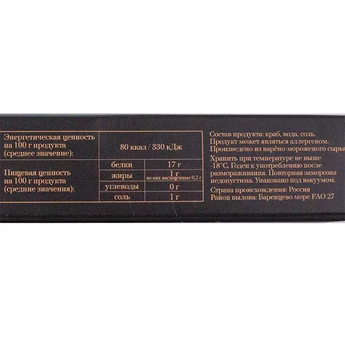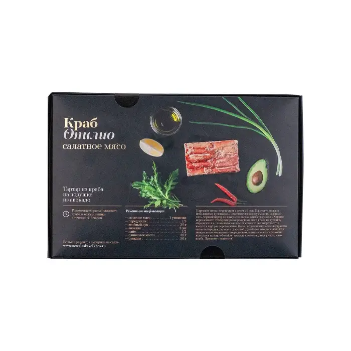 Сочное варено-мороженое мясо Опилио богато питательными веществами и имеет мягкую волокнистую текстуру, нежный сладковатый вкус. Глазурь 5% защищает от воздействий окружающей среды: заветривания, механических повреждений, помогает сохранить свежесть и вкус на протяжении всего срока годности.