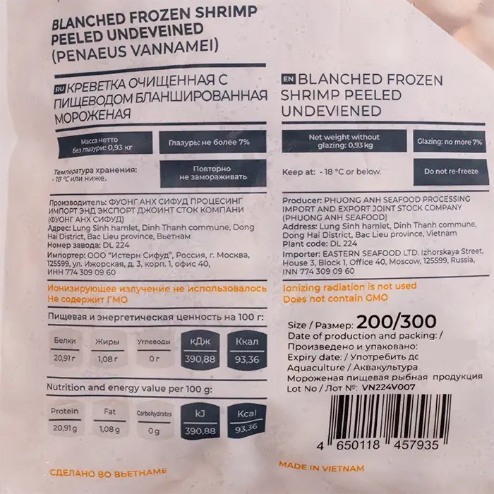 - уже очищены от панциря и пищевода;- сварены в морской воде;- не требуют дополнительной тепловой обработки