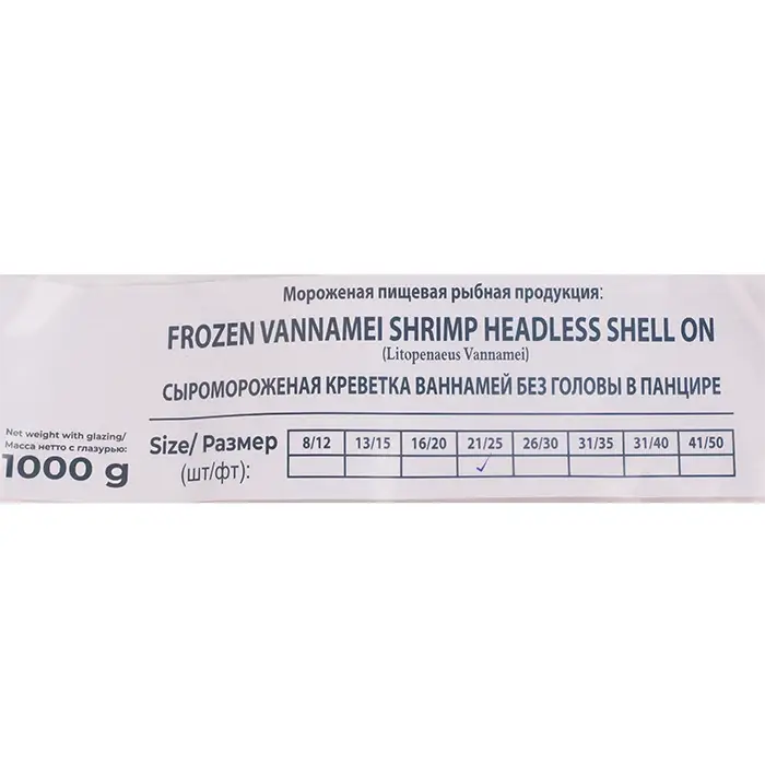 Креветки тигровые свежемороженые без головы 21/25, "Phuong Anh Seafood", глазурь 7%, 1 кг