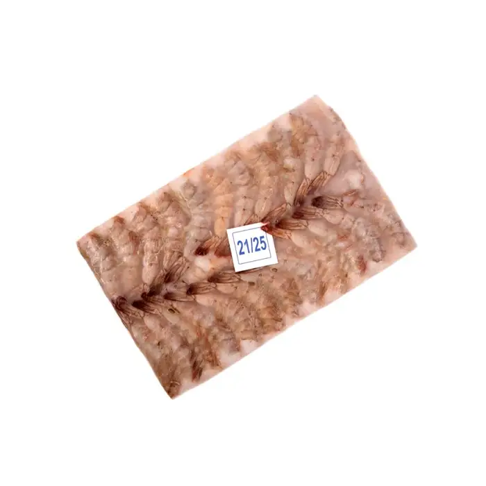 Креветки заморожены блоком для сохранения формы и предотвращения высыхания и заветривания.