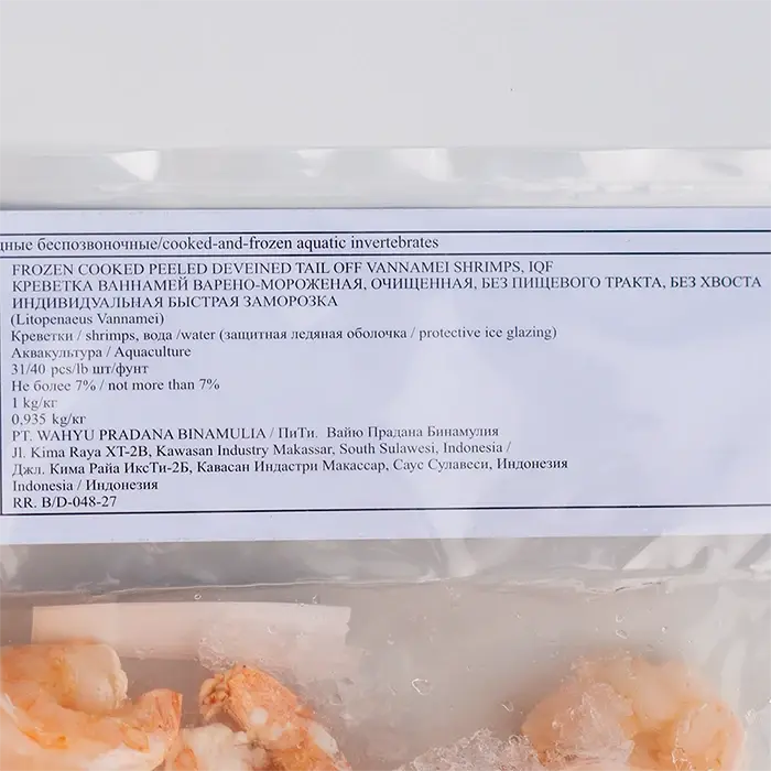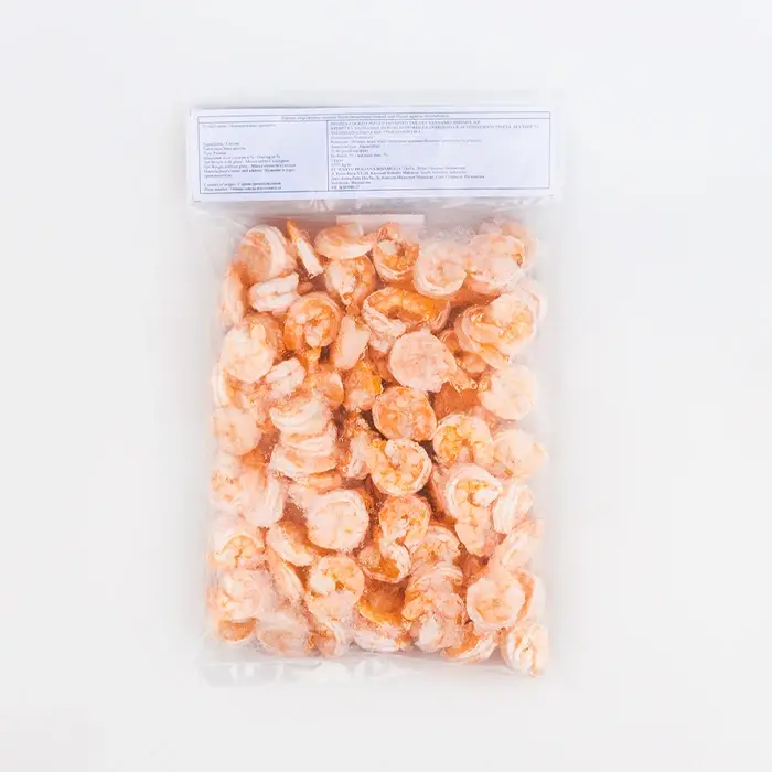 Очищенные тигровые креветки без хвоста имеют средний размер, плотную и упругую текстуру и сочное мясо со сладковатым вкусом. Креветки не требуют варки.