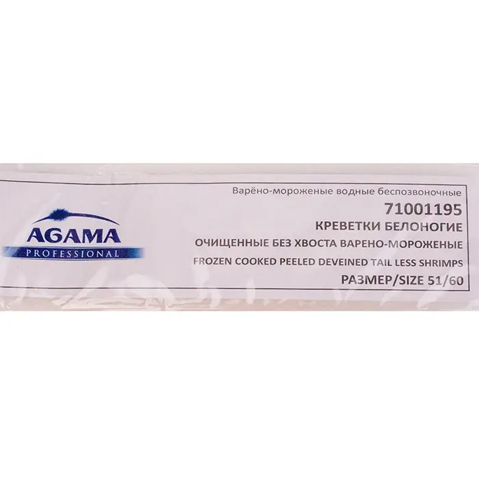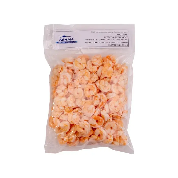 Креветки тигровые варено-мороженые очищенные без хвоста 51/60, "Agama Professional", 1 кг