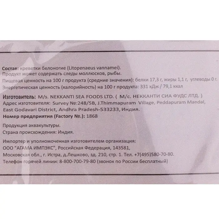 Креветки варено-мороженые готовы к употреблению: термически обработаны, очищены от панциря, хвоста и пищевода.