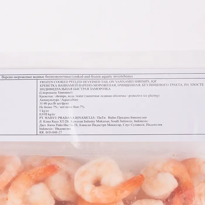 Креветки тигровые варено-мороженые, очищенные, с хвостом 31/40, 1 кг