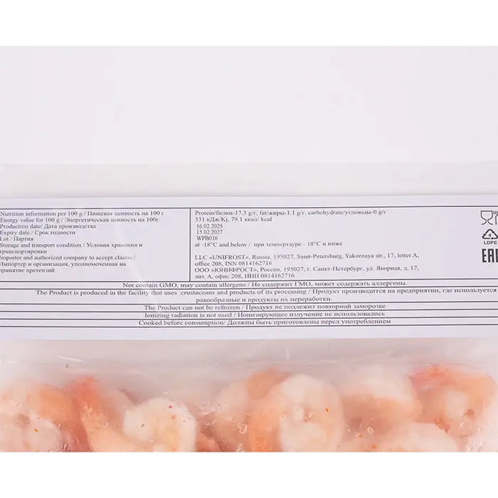 Тонкая ледяная глазурь 7% защищает продукт от заветривания и механических повреждений, позволяет сохранить природный вкус и цвет.